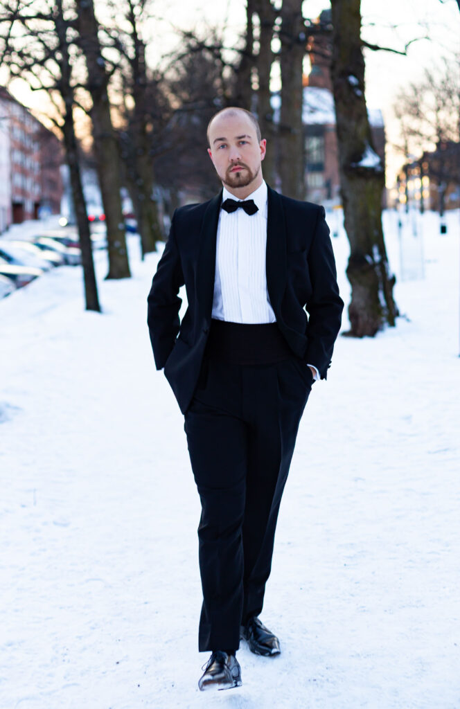 (Tummat puvut, smokit, frakkipuvut ja sakettipuvut)
